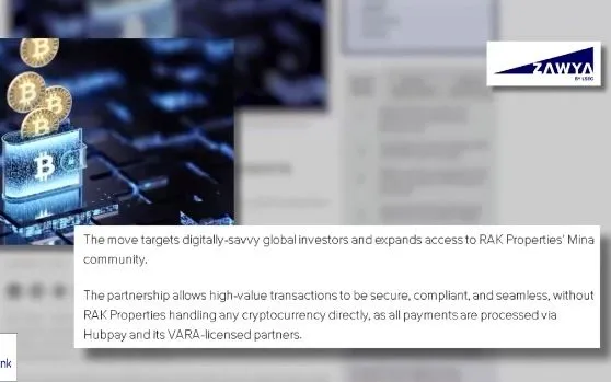 Công ty RAK đã hợp tác với công ty công nghệ tài chính Hubpay cho phép khách hàng quốc tế mua bất động sản bằng các đồng tiền kỹ thuật số. Các khoản thanh toán sẽ được chuyển đổi ngay sang đồng nội tệ của UAE và được chuyển vào tài khoản của công ty RAK tại nền tảng Hubpay.