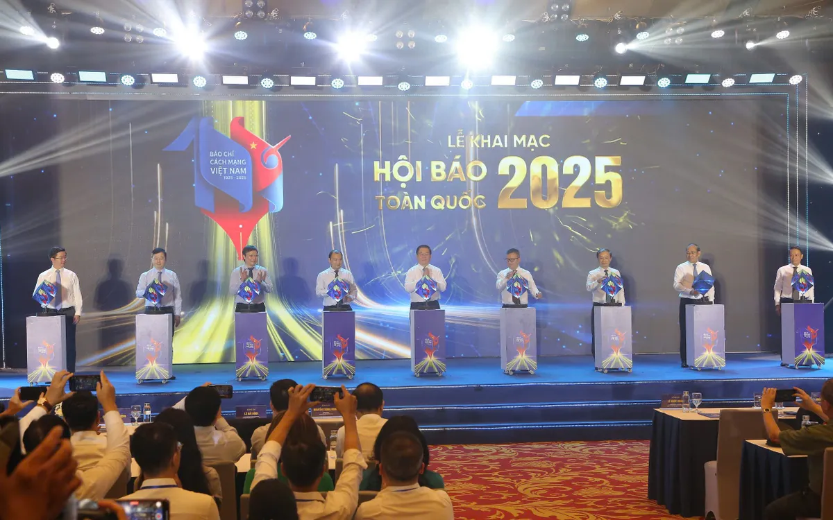 Các đồng chí lãnh đạo ấn nút khai mạc Hội Báo toàn quốc 2025