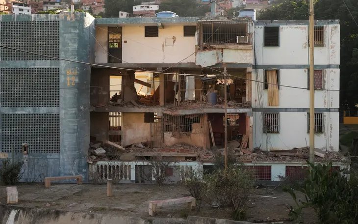 Khu chung cư bị hư hại do bị trúng bom trong các cuộc tấn công của Mỹ tại Catia La Mar, Venezuela, ngày 4/1/2026 (Ảnh: AP)