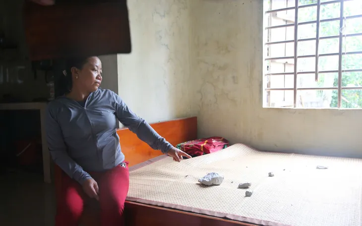 Qua kiểm tra, phát hiện 5 ngôi nhà bị đá văng làm vỡ mái ngói, hàng chục ngôi nhà khác có đá rơi vương vãi khắp sân và vườn.
