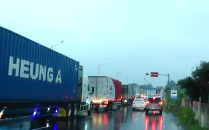 Những chiếc xe tải, xe khách nằm nối đuôi nhau trên tuyến quốc lộ 1 kéo dài từ Xã Ô Loan, Tuy an Nam đến Phường Bình Kiến. Nhiều phương tiện còn di chuyển vào các con đường khác vì đường trên quốc lộ 1 không còn đủ chỗ dừng.
