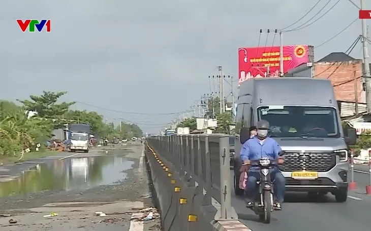 Ghi nhận tại khu vực Quốc lộ 1 đoạn qua xã Đại Hải, TP Cần Thơ, trên đoạn đường dài khoảng 1km xuất hiện tình trạng sụt lún nghiêm trọng. Sau mỗi cơn mưa, triều cường, mặt đường biến thành những vũng nước lớn kéo dài, gây nguy hiểm cho người tham gia giao thông.