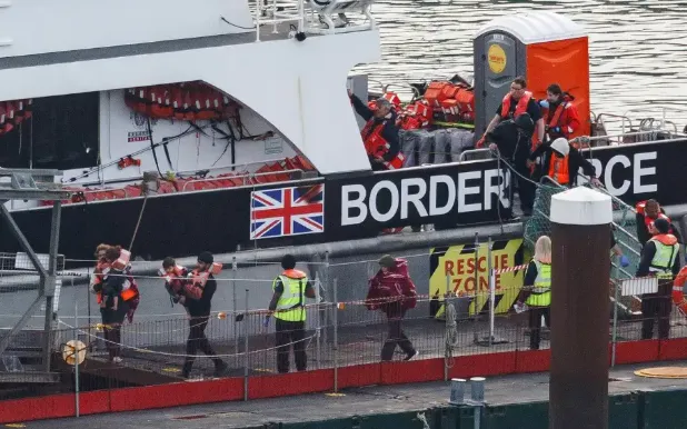 Tàu của Lực lượng Biên phòng Anh chở người di cư cập cảng Dover, ngày 31/10/2024, tại Dover, Anh (Ảnh: Getty Images)