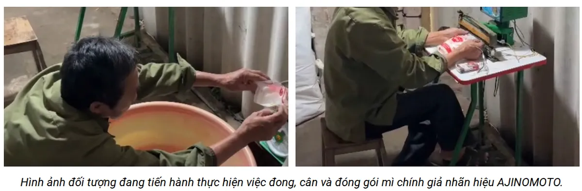 Tại thời điểm kiểm tra, Cơ quan điều tra thu giữ nhiều đồ vật, phương tiện dùng để sản xuất mì chính giả. Đồng thời, thu giữ 17 bao tải chứa gói mỳ chính thành phẩm các loại, đều giả nhãn hiệu mì chính Ajinomoto. Cơ quan điều tra xác định, tổng số mì chính thu giữ là hơn 1,1 tấn.