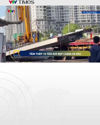 Tấm thép hơn 10 tấn rơi đè bẹp cabin xe rác, một người tử vong