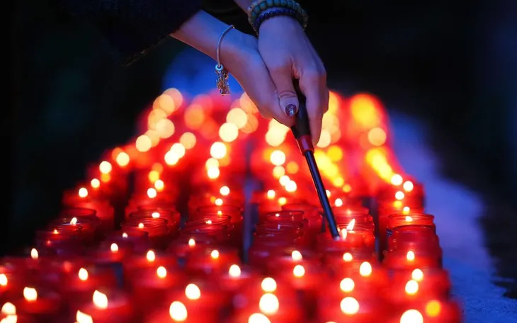 Một phụ nữ thắp nến trong lễ tưởng niệm Ngày Quốc tế tưởng niệm các nạn nhân Holocaust tại trại tập trung cũ của Đức Quốc xã ở Terezin, Czech, ngày 27/1/2026 (Ảnh: AP)