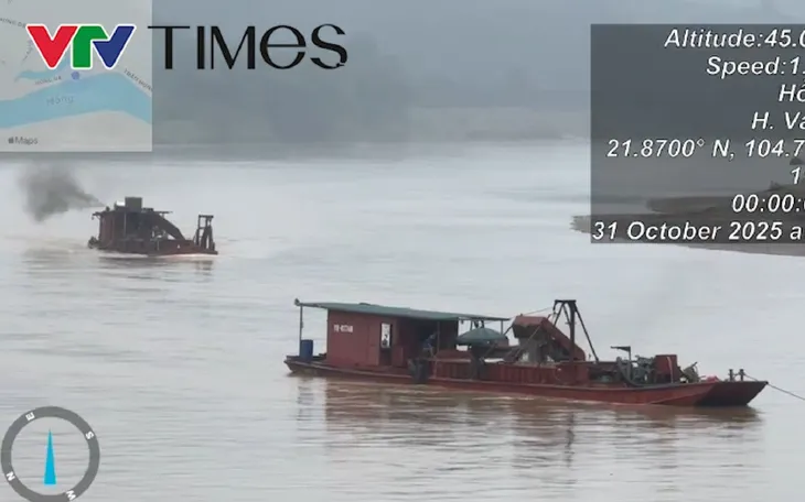 Hoạt động khai thác cát tại sông Hồng đoạn chảy qua xã Mậu A và xã Xuân Ái (Lào Cai).