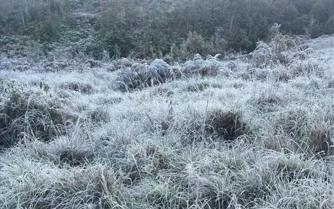 Băng giá, sương muối bám vào cành cây, ngọn cỏ tại Y Tý, Lào Cai.