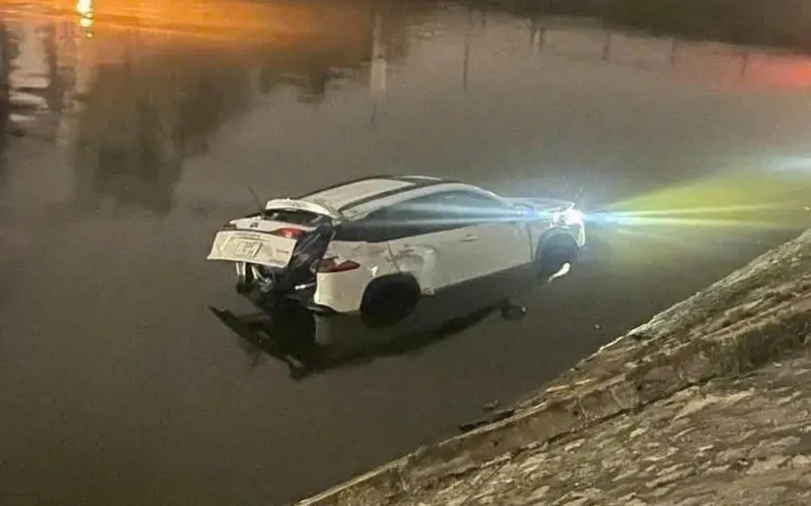 Tại hiện trường, ô tô bị hư hỏng phần thân, cốp xe bật mở. Do mực nước sông Tô Lịch thấp, xe chỉ bị ngập ngang bánh.