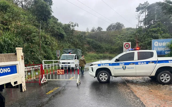 Phòng Cảnh sát giao thông Công an tỉnh Lâm Đồng đã thiết lập các chốt chặn tại phía Lâm Đồng, đồng thời bố trí biển báo, cán bộ trực hướng dẫn phương tiện quay đầu, yêu cầu người dân tuyệt đối không đi vào khu vực có nguy cơ sạt lở cao.