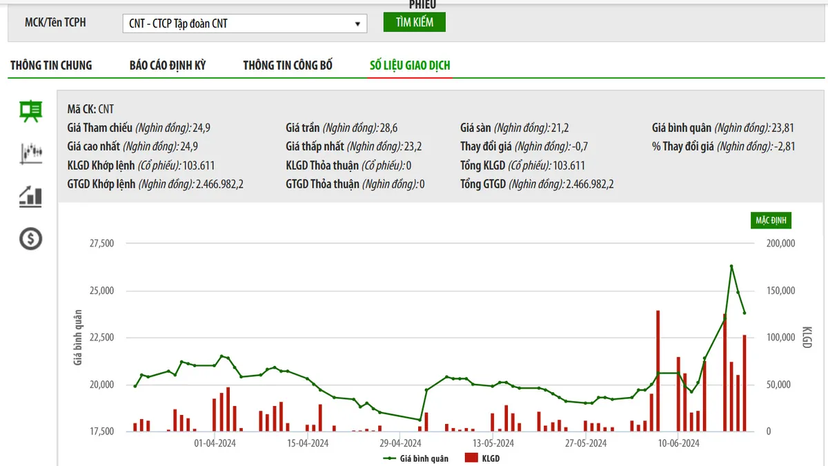 Sơ đồ giá cổ phiếu CNT trên HNX.