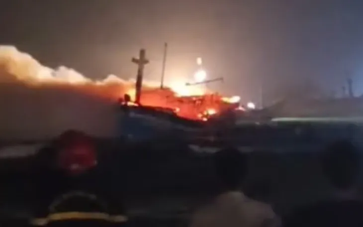 Khoảng 21h30 ngày 11/4, tại khu vực biển Phước Thiện (xã Vạn Tường, tỉnh Quảng Ngãi), một tàu cá đang neo đậu bất ngờ bốc cháy dữ dội.