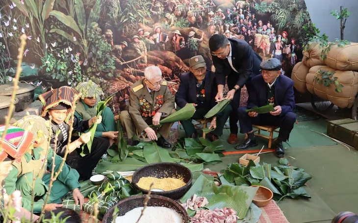 Một trong những điểm nhấn của chương trình là hoạt động trải nghiệm gói bánh chưng, bánh gù, những món ăn truyền thống gắn liền với Tết của chiến sĩ Điện Biên năm 1954. Những chiếc bánh được gói bằng lá rừng, luộc trên bếp Hoàng Cầm, sáng kiến độc đáo của bộ đội ta trong kháng chiến không chỉ là món ăn ngày Tết mà còn là biểu tượng của tinh thần đoàn kết, nghĩa tình đồng đội và sự sáng tạo vượt khó của Quân đội nhân dân Việt Nam. Hơn bảy thập kỷ trôi qua, hình ảnh ấy hôm nay được các chiến sĩ Điện Biên năm xưa cùng những người lính trẻ và đồng bào dân tộc Thái trân trọng tái hiện như một nhịp cầu nối liền ký ức lịch sử với hiện tại.