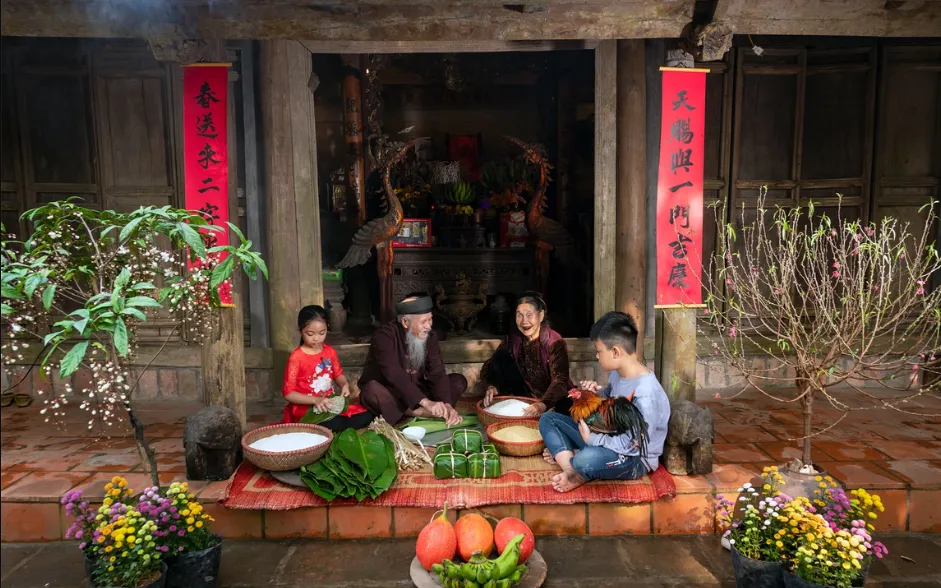 Cả gia đình quây quần gói bánh chưng bên bếp lửa đỏ hồng, lũ trẻ háo hức chờ đến sáng để được mặc áo mới, đi chúc Tết họ hàng. Những món ăn ngày Tết không nhiều, nhưng ai cũng cảm nhận rõ sự trân trọng trong từng bữa cơm.