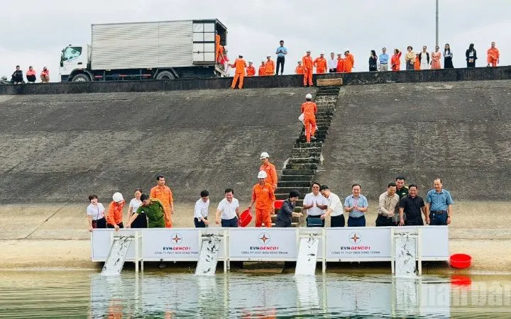 Lòng hồ Nhà máy Thủy điện Sông Tranh 2 có diện tích mặt nước hơn 2.100ha, không chỉ đảm nhiệm vai trò sản xuất điện mà còn là hệ sinh thái quan trọng của khu vực. Trong 11 năm qua, hoạt động thả cá giống được duy trì thường niên nhằm tái tạo nguồn lợi thủy sản, góp phần cân bằng sinh thái, hạn chế hiện tượng phú dưỡng hóa và kiểm soát sự phát triển của tảo, qua đó duy trì chất lượng nguồn nước, yếu tố nền tảng bảo đảm vận hành an toàn, ổn định và bền vững công trình.