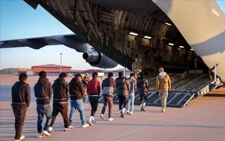 Một chiếc Boeing C-17 của Không quân Hoa Kỳ được sử dụng cho các chuyến bay trục xuất tại Sân bay Quân đội Biggs ở Fort Bliss, El Paso, Texas vào năm 2025 (Ảnh: AFP)