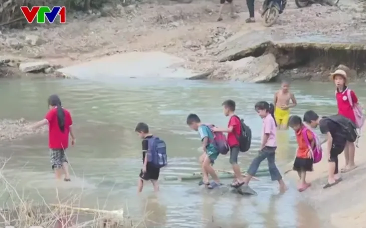 Gần 100 học sinh từ bậc mầm non đến THPT của thôn Thúy, xã Thiết Ống, tỉnh Thanh Hóa đang phải ngày ngày lội suối đến trường bởi cầu tràn, đường chính nối từ thôn ra quốc lộ 15A đã bị nước lũ cuốn trôi một nhịp và hư hỏng nặng.