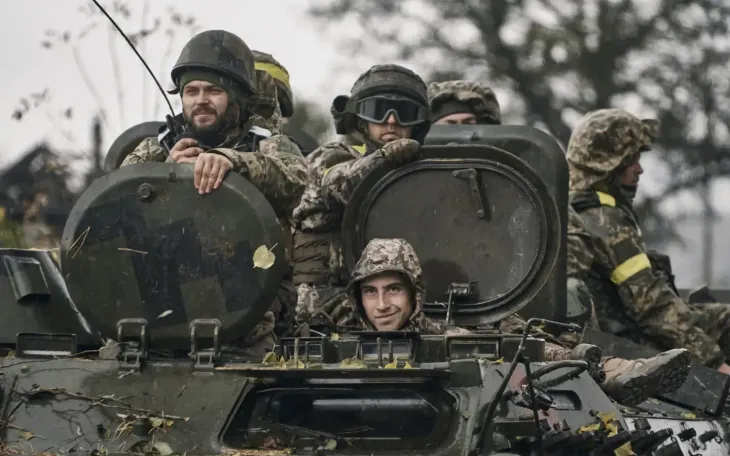 Binh sĩ Ukraine đang di chuyển bằng xe bọc thép ở khu vực Donetsk, tháng 10/2022 (Ảnh: AP)