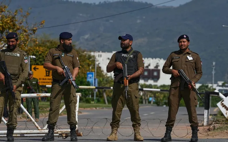 Cảnh sát canh gác tại chốt kiểm soát ở Islamabad, Pakistan, trước vòng đàm phán Mỹ - Iran, ngày 20/4/2026 (Ảnh: AP)