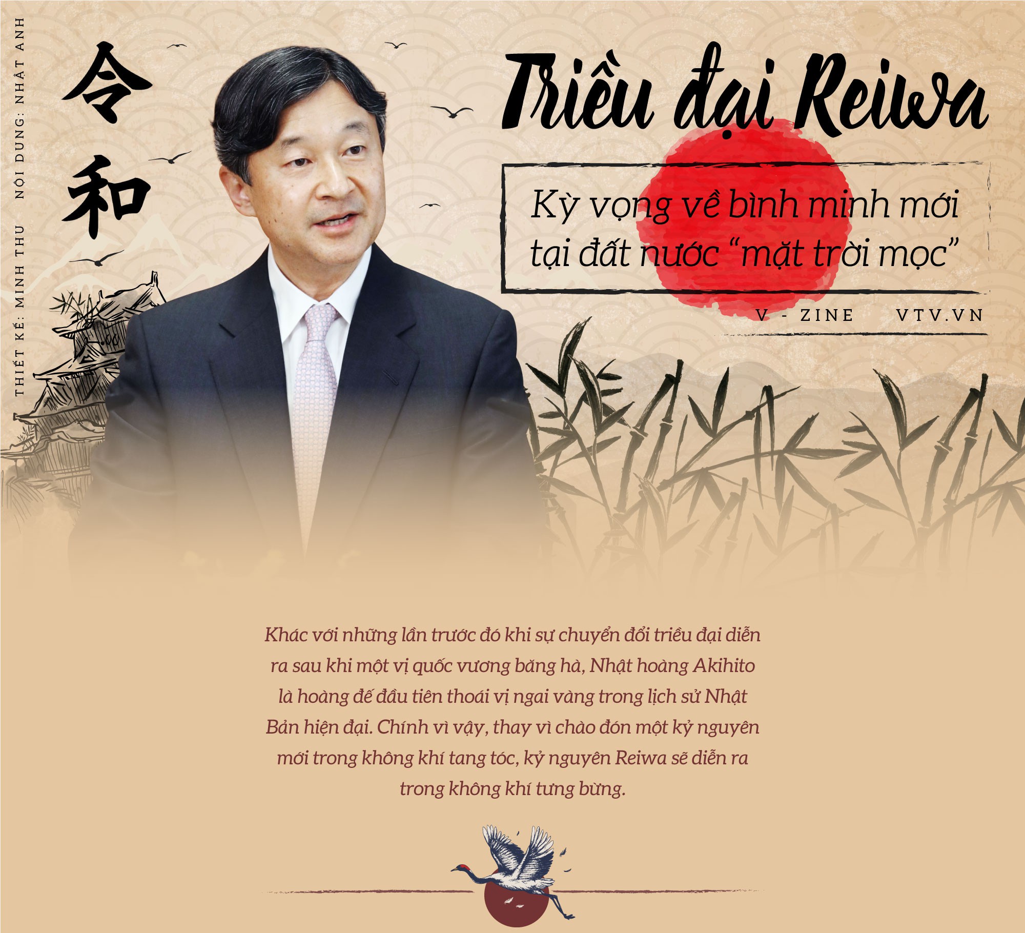 ới việc Nhật hoàng Naruhito lên ngôi, Nhật Bản bước vào một kỷ nguyên mới có tên gọi Reiwa, hay Lệnh Hòa, được hiểu là "hòa bình thịnh trị". Theo Jeffrey Kingston, giám đốc nghiên cứu châu Á tại Đại học Temple ở Nhật Bản, tên gọi này được định hình thông qua hành động và cung cách trị vì của Nhật hoàng Naruhito.