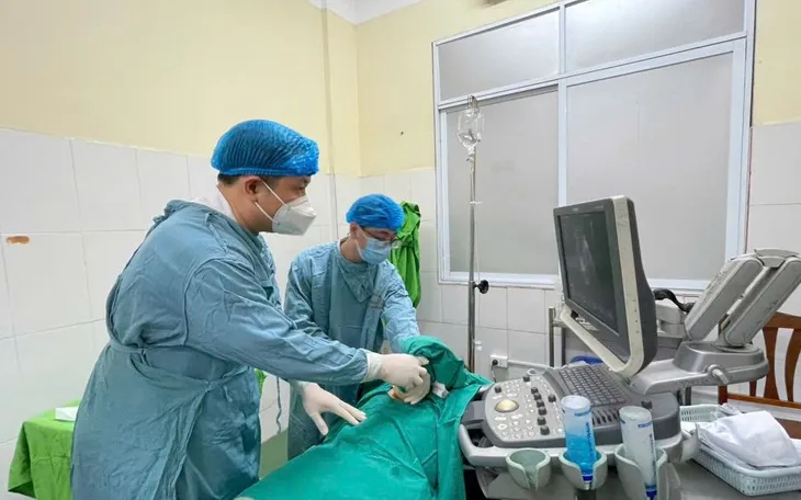 Bệnh nhân được chuyển điều trị tại Khoa Nội hô hấp - Tiêu hóa. Ekip điều trị do BSCKII Bùi Mạnh Cường, Trưởng khoa Nội hô hấp - Tiêu hóa, cùng ThS.BS Nguyễn Văn Sơn trực tiếp thực hiện đã nhanh chóng triển khai phác đồ điều trị toàn diện. Bệnh nhân được sử dụng kháng sinh phổ rộng đường tĩnh mạch, theo dõi sát các chỉ số sinh tồn và chức năng gan. Đồng thời, các bác sĩ tiến hành chọc hút ổ áp xe gan dưới hướng dẫn hình ảnh, loại bỏ dịch mủ - bước can thiệp then chốt giúp kiểm soát nguồn nhiễm trùng.