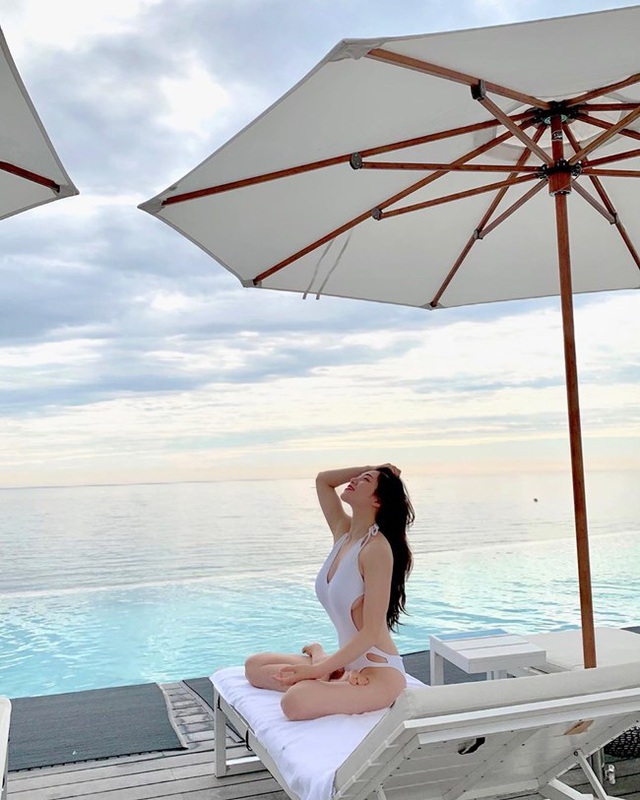 Jeon Eun Jeong không chỉ tập yoga trong phòng tập mà bất cứ khi nào cô có thời gian rảnh, kể cả là đi nghỉ dưỡng.