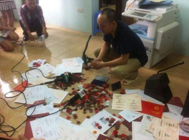 Ổ nhóm này do đối tượng Hà Văn Nghĩa (sinh năm 1983), trú tại xã Ninh Hải, huyện Tĩnh Gia, Thanh Hóa, cầm đầu. Cơ quan công an ra quyết định khởi tố vụ án, khởi tố bị can, ra lệnh tạm giam đối với Hà Văn Nghĩa và các đối tượng liên quan là Dương Mạnh Long (sinh năm 1988), trú tại Vĩnh Tuy, Hai Bà Trưng, Hà Nội; Trần Văn Cường (sinh năm 1985), trú tại Minh Đức, huyện Phổ Yên, tỉnh Thái Nguyên và Hoàng Lâm (sinh năm 1983) trú tại Tân Thành, thành phố Thái Nguyên, tỉnh Thái Nguyên, để điều tra làm rõ về hành vi làm giả con dấu, tài liệu của cơ quan, tổ chức.