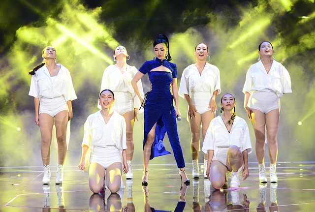 Giọng ca Bao giờ lấy chồng chọn trang phục gợi cảm và thể hiện phần trình diễn đầy sôi động cùng vũ đoàn.