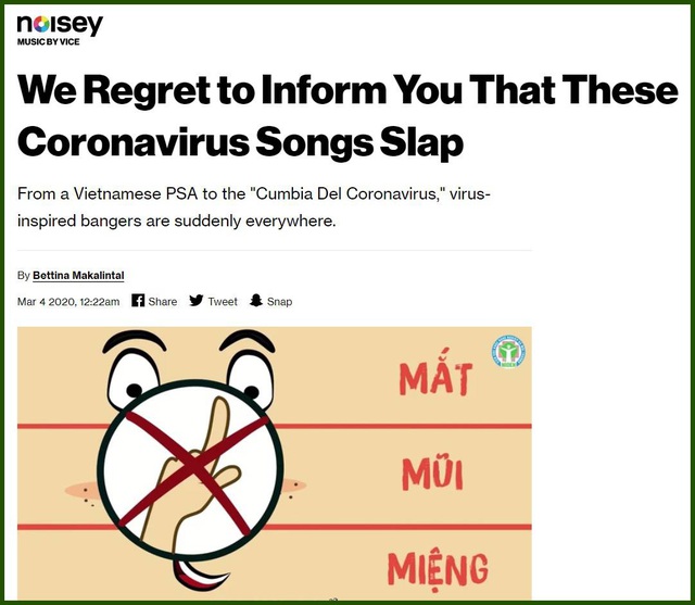Tạp chí Vice (Canada) giới thiệu những ca khúc được sáng tác xoay quanh dịch Covid-19