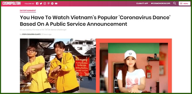 Tạp chí Cosmopolitan của Philippines giới thiệu về “vũ điệu rửa tay” với bài viết có tiêu đề “Bạn cần phải xem ‘vũ điệu phòng chống Covid-19’ rất nổi tiếng của Việt Nam”.
