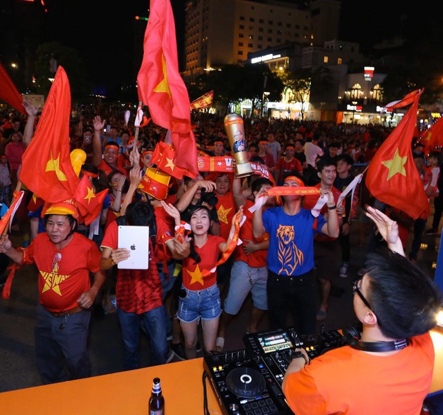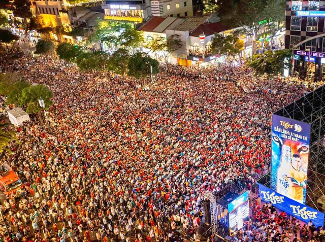 Phố đi bộ Nguyễn Huệ những ngày qua đã dậy sóng với từng đợt hò reo trước chiến thắng "đậm đà"của đội tuyển U22, giành HCV SEA Games môn bóng đá nam sau 60 năm đợi chờ