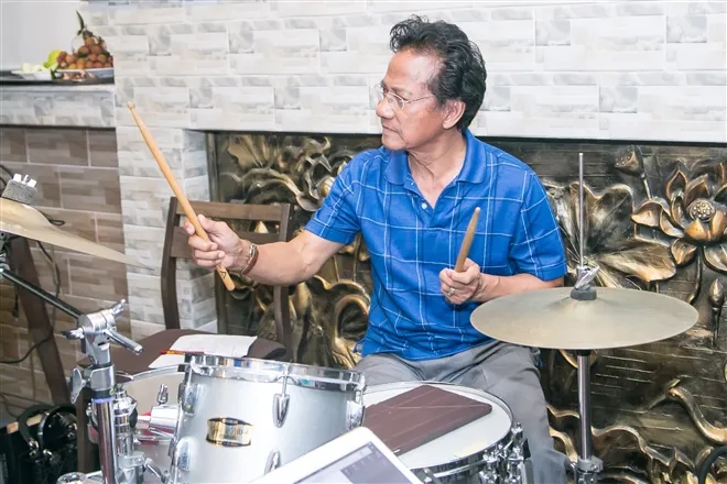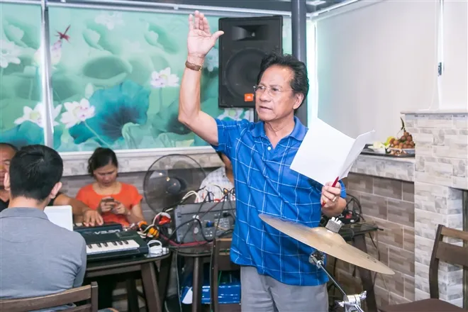 Vì thế, ngay tại buổi tập luyện, Chế Linh rất hào hứng chơi trống cho con tập cũng như chỉ huy buổi tập với một tinh thần nhiệt huyết mà ít người nào ở tuổi ông có được.