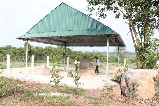 Hiện bia đá được huyện Đắk Pơ xây mái che bằng tôn và quây tường rào để bảo vệ thuộc thôn Tư Lương, xã Tân An, huyện Đắk Pơ, Gia Lai.