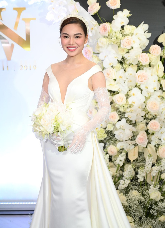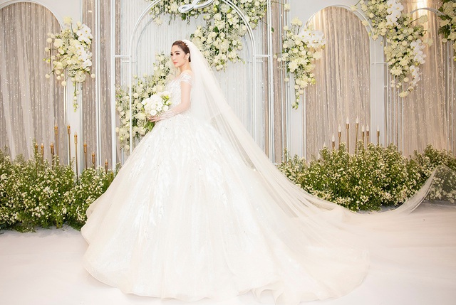 Bảo Thy cũng vừa lên xe hoa ngày 16/11 vừa qua. Người đẹp chọn cho mình thiết kế lộng lẫy, được may đo và đính kết cầu kì trong 3 tháng.
