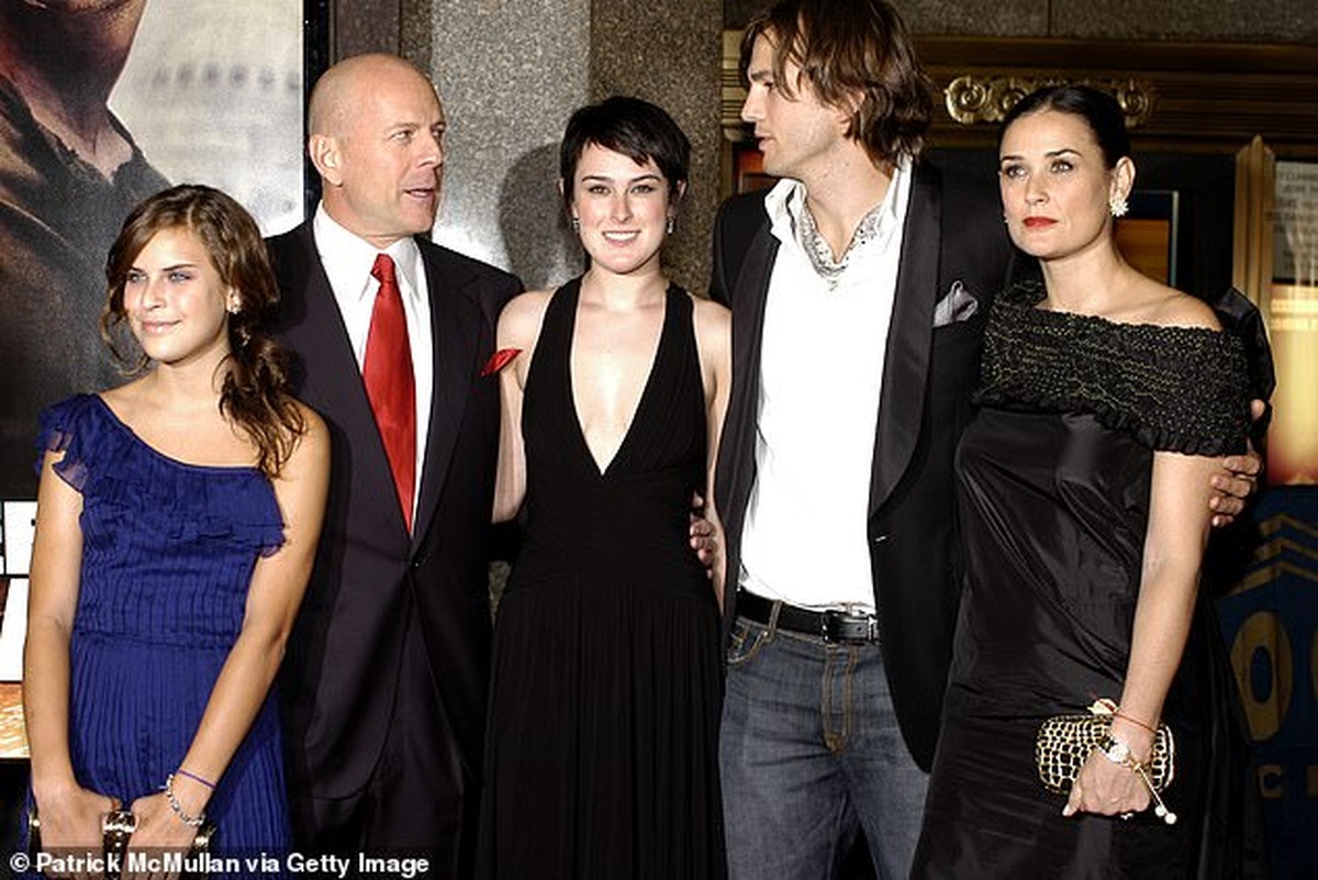 Demi Moore chụp hình cùng hai người chồng cũ và hai con gái.
