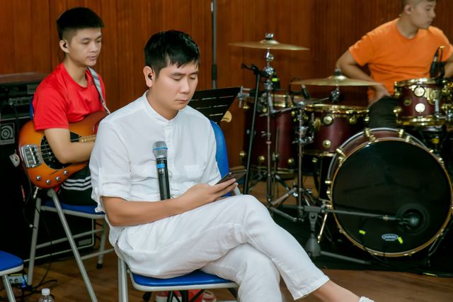 Hồ Hoài Anh xuất viện trong buổi tập nhạc tối 8/10 với vẻ ủ rũ.