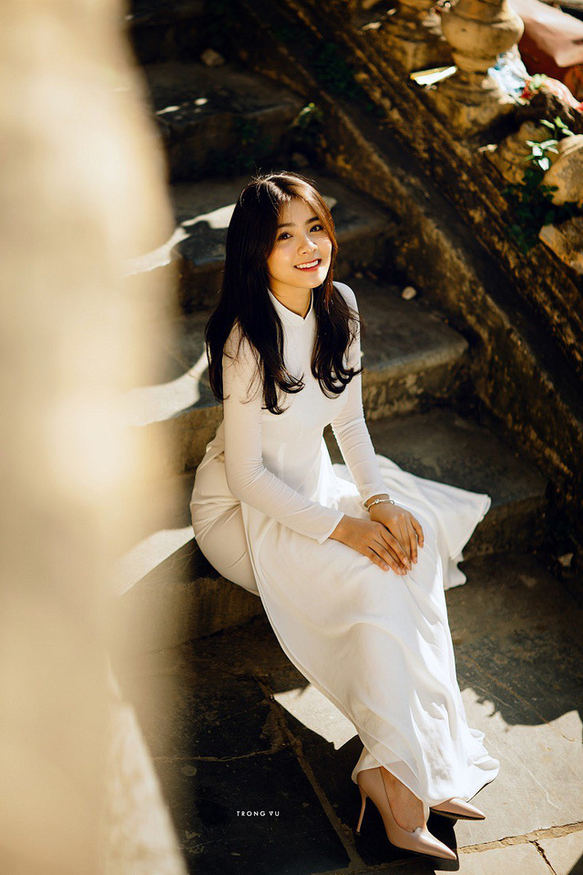 “Bộ ảnh này em chụp khá ngẫu hứng, tranh thủ những ngày nắng cuối Thu đang đẹp. Em “mê” áo dài nên lúc nào cũng thích chụp áo dài nhất. Lần nào mặc áo dài trắng cũng thật nhiều cảm xúc”, Thu Giang chia sẻ.