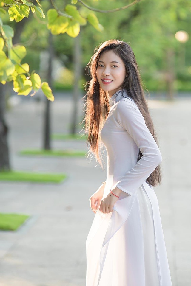 Nhi sở hữu gương mặt khả ái, mái tóc dài suôn mượt cùng dáng người mảnh mai và ánh mắt đầy cuốn hút. Cô đơn thuần chỉ là muốn lưu giữ nét thanh xuân ở Hà Nội, để mai này nhìn lại sẽ có thể nở nụ cưởi rạng rỡ vì năm tháng tươi đẹp ấy.