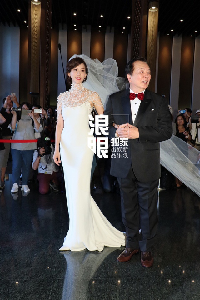 Siêu mẫu Lâm Chí Linh diện một thiết kế váy cưới cổ điển của nhà mốt Ralph Laurent trong hôn lễ tổ chức ở đại tông đường Ngô thị, Đài Nam, Đài Loan, chiều 17/11.