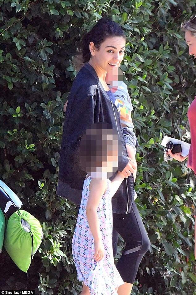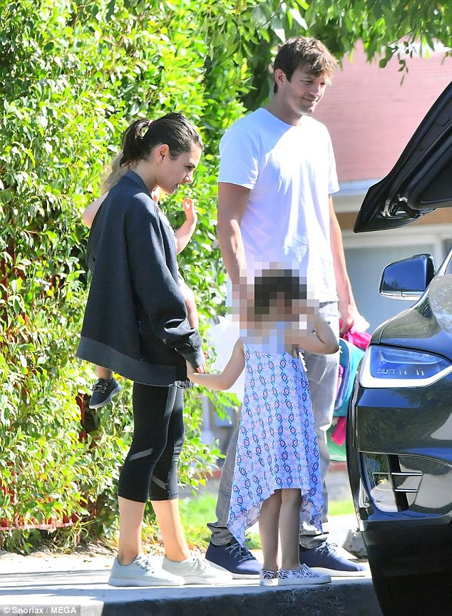 Ngày 1/10 vừa rồi, Mila Kunis và Ashton Kutcher bị giới săn tin bắt gặp khi đưa hai con đi dạo phố tại Los Angeles. Nữ diễn viên 35 tuổi bế cậu con trai 21 tháng tuổi Dimitri trên tay trong khi cô con gái 3 tuổi - Wyatt bám theo bố mẹ ra ngoài ăn trưa. Để bảo vệ hai con, cặp đôi nổi tiếng của Hollywood quyết không bao giờ để lộ mặt các con trên các phương tiện truyền thông nên họ yêu giới săn tin xóa nhòa mặt của hai bé.