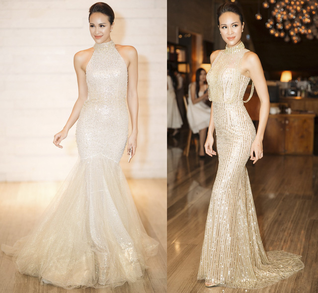 Kỳ Duyên diện đầm đuôi cá ôm sát với ánh bạc lấp lánh cực kì sang trọng. Từ sau The Look mùa đầu tiên, Hoa hậu Việt Nam 2014 gần như “lấy lại hào quang” với nhiều hoạt động tích cực trong showbiz, gout thời trang của cô cũng trở nên chừng mực, ổn định hơn.