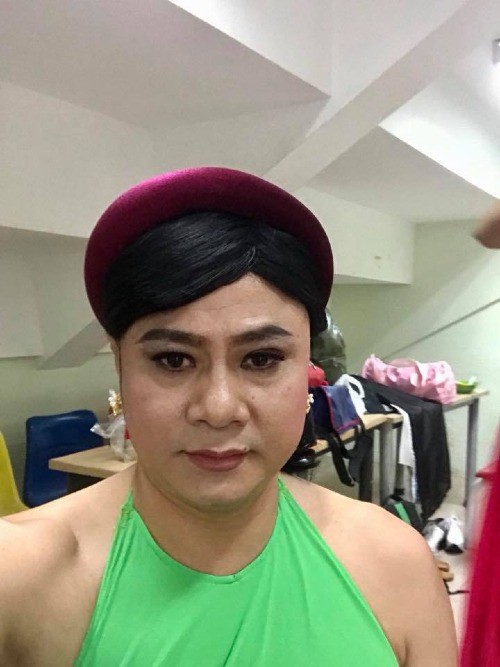 Nghệ sĩ hài Tự Long chia sẻ hình ảnh "vai u thịt bắp" nhưng vẫn không ngại mặc áo yếm giả gái trong chương trình chuẩn bị cho dịp Tết.