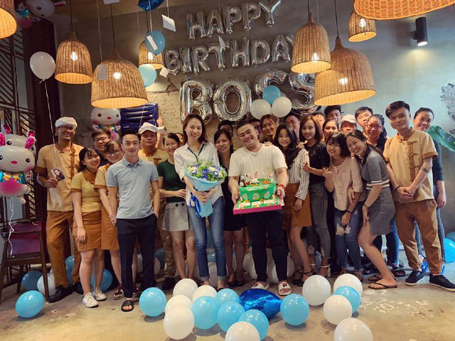 Đàm Thu Trang hạnh phúc trong ngày sinh nhật bên cạnh người hâm mộ, đặc biệt là còn có sự xuất hiện của bạn trai Quốc Cường. Cô chia sẻ: "Sáng sớm phi thân ra nhà hàng cúng kiếng để chuẩn bị đóng cửa sửa sang lại bên trong. Mặt con bé vẫn còn lơ ngơ vì mới ngủ dậy thì ôi thôi nguyên một đội "giặc nhà" kéo tới chúc mừng sinh nhật làm con bé bị xúc động và nhận quà sinh nhật sớm trong trạng thái vẫn đang ngơ. Cảm ơn tất cả mọi người".