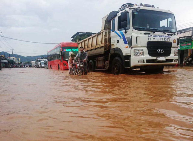 Trận mưa lớn tối qua khiến nhiều đoạn đường ở Lâm Đồng bị ngập nước