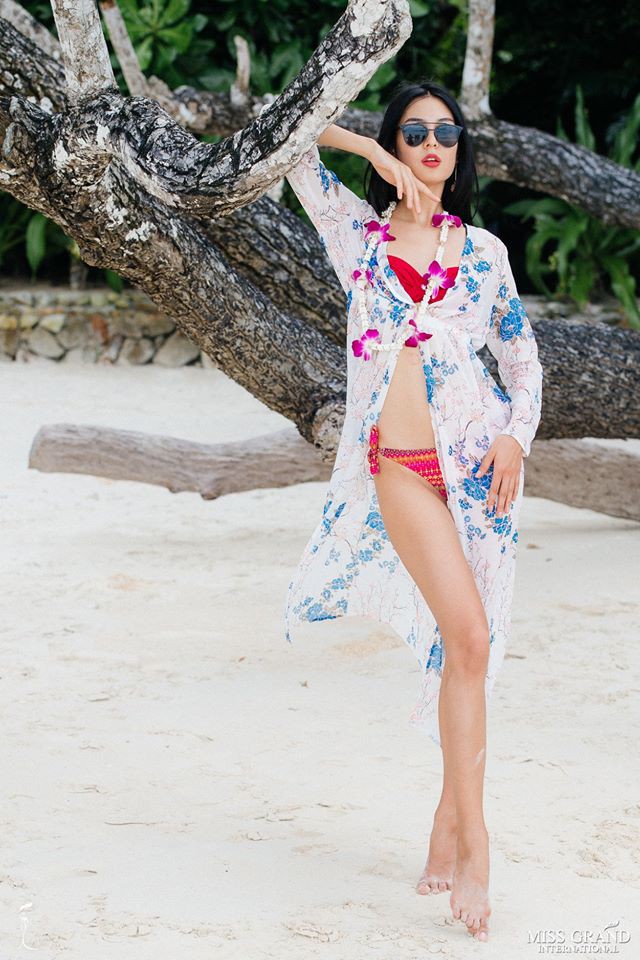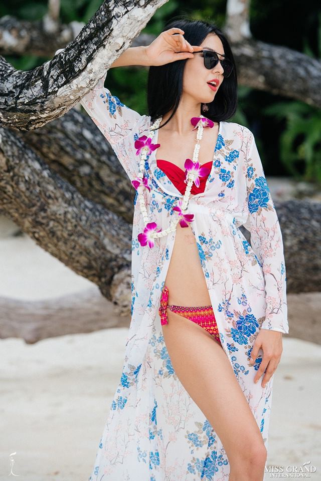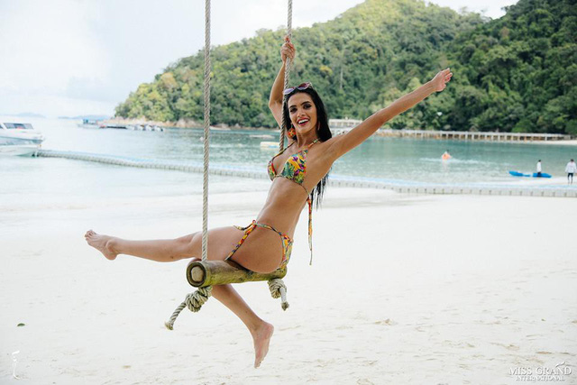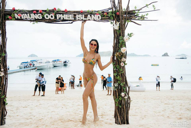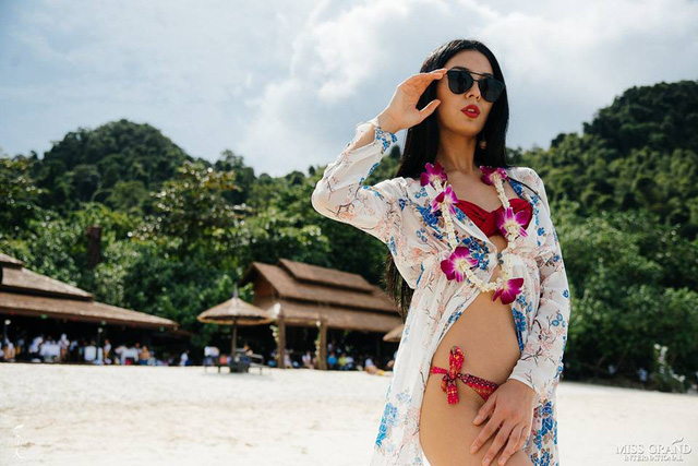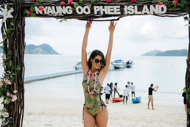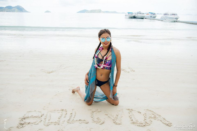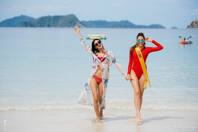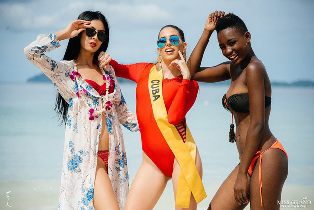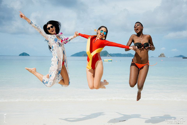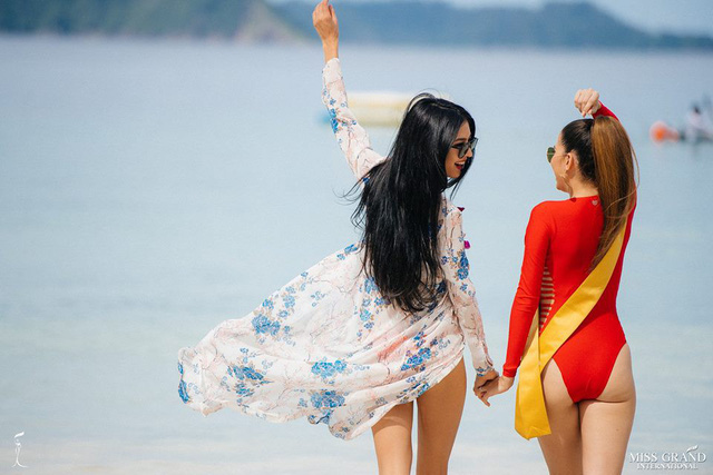 Những "bông hoa" xinh đẹp nhất của cuộc thi Hoa hậu Hòa bình thế giới 2018 "thả dáng" trên biển.
