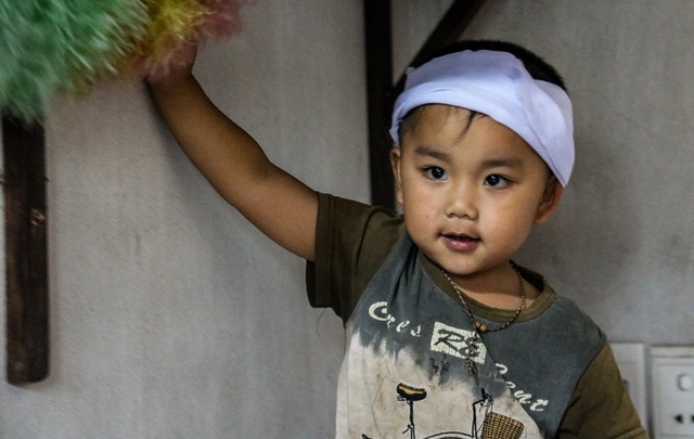 Em Nguyễn Đôn Hòa mới 4 tuổi hồn nhiên chưa hiểu chuyện gì đã xảy với gia đình mình