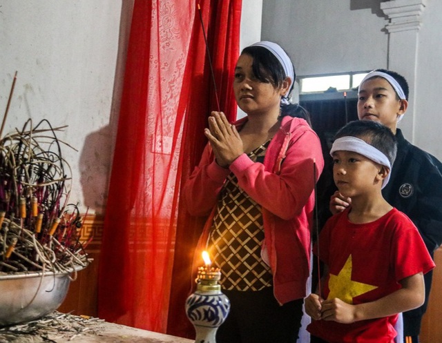 Nhìn 2 đứa trẻ Khánh và Hòa đầu chít khăn tang, ngây thơ vui đùa bên di ảnh của người bố ai cũng quặn lòng. Chúng còn quá nhỏ để hiểu chuyện gì đã xảy đến với gia đình mình.