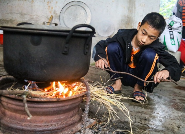 Từ ngày bố mất, em Nguyễn Hoàng Sinh, con trai đầu năm nay học lớp 8 phải thay mẹ trông em và phụ các việc trong gia đình. Nhưng em Sinh cũng chỉ mới phụ giúp mẹ những việc nhỏ trong nhà vì em còn bé.
