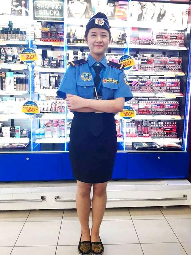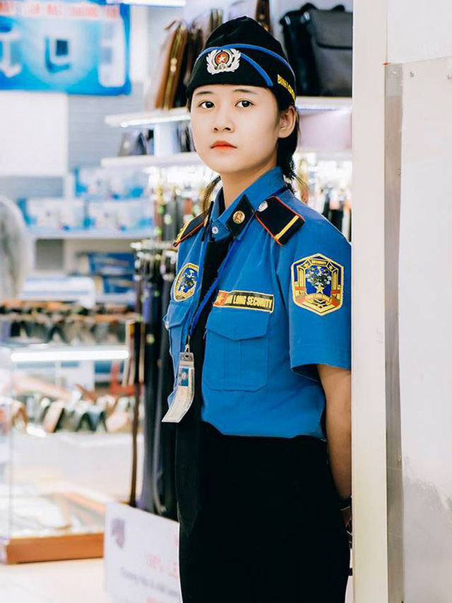 Cô gái xuất hiện trong bức ảnh mặc bộ đồng phục của đội bảo vệ một siêu thị tại thành phố Vinh, Nghệ An. Một trong những bức ảnh "đốn tim" cộng đồng mạng là nét mặt cô đang tập trung công việc nhưng vẫn toát lên nét thanh tú.