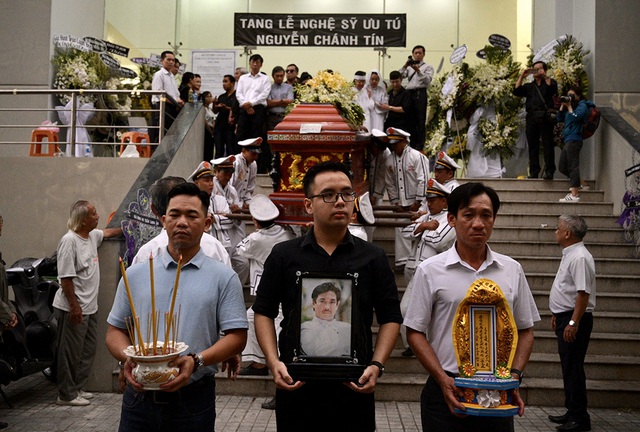 Lễ di quan đưa linh cữu nghệ sĩ Nguyễn Chánh Tín về nghĩa trang Đa Phước (Bình Chánh, TPHCM).